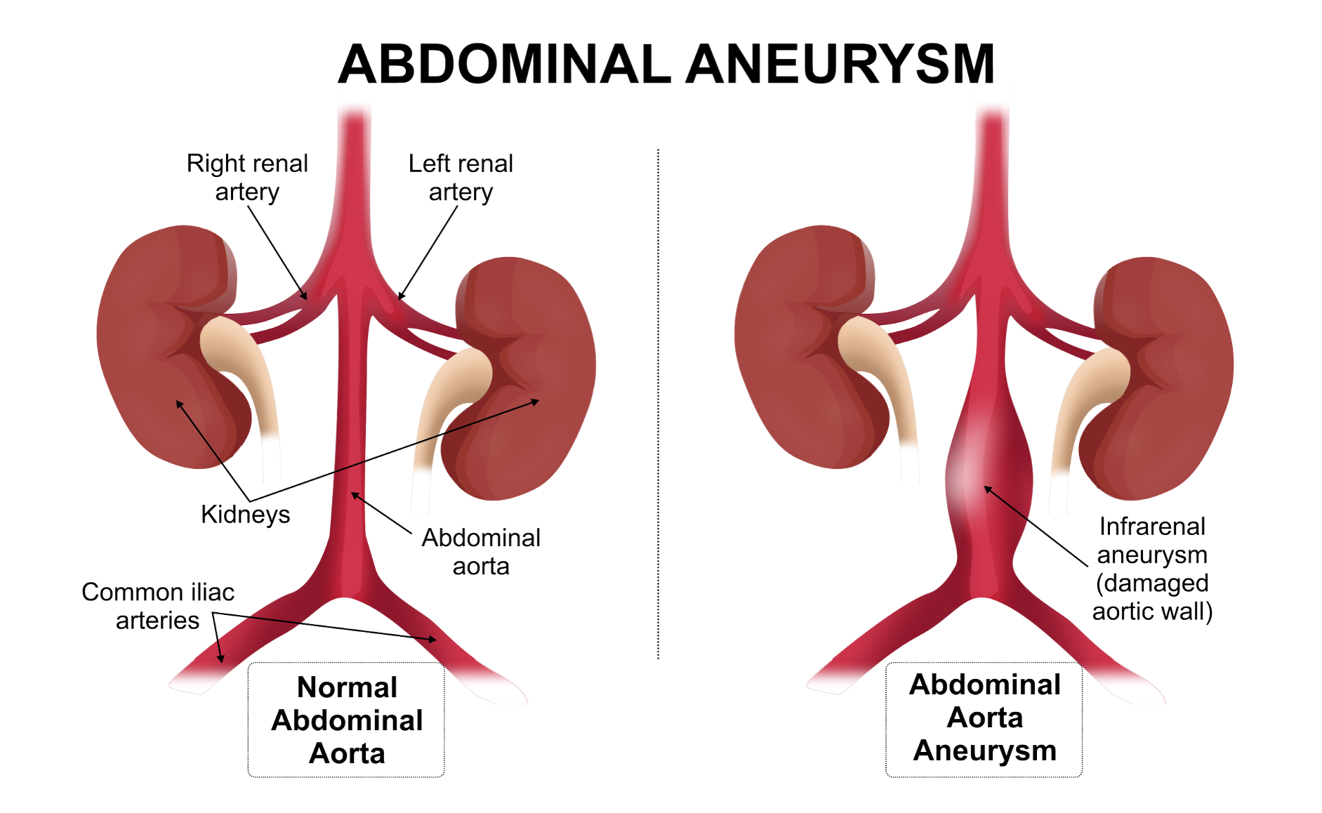 When an aneurysm is small and not causing problems, it is generally watched rather than treated. However, if it grows too large or the vessel wall becomes too weak, rupture can occur — causing sudden, life-threatening internal bleeding. When AAAs reach a certain size, preventive surgery is recommended before rupture has a chance to happen.